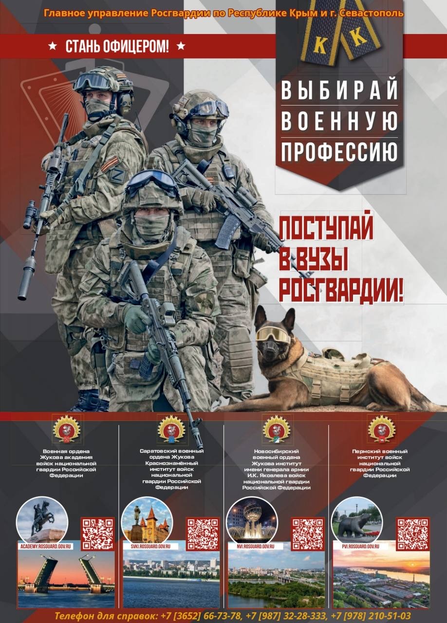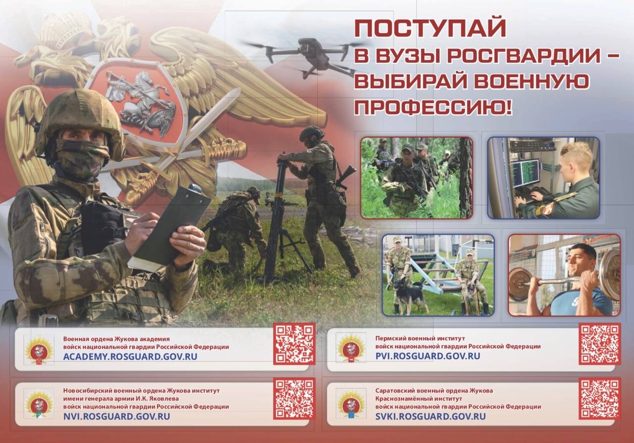 Военные образовательные организации высшего образования войск национальной гвардии Российской Федерации приглашают целеустремленных, смелых и патриотично настроенных юношей поступить в свои ряды и стать курсантами!