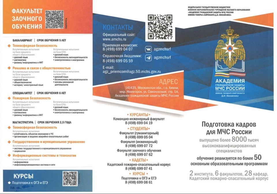 Академия гражданской защиты МЧС Российской Федерации приглашает юношей и девушек для поступления в качестве курсантов в единственное военное образовательное учреждение высшего образования в МЧС России.